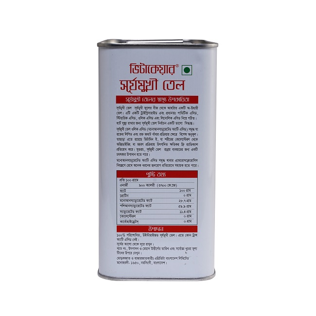 3. Nutrient-Rich: Packed with essential nutrients like vitamin E, Vitacare Sunflower Oil supports overall well-being. Vitamin E is an antioxidant that helps protect your cells from damage caused by free radicals.